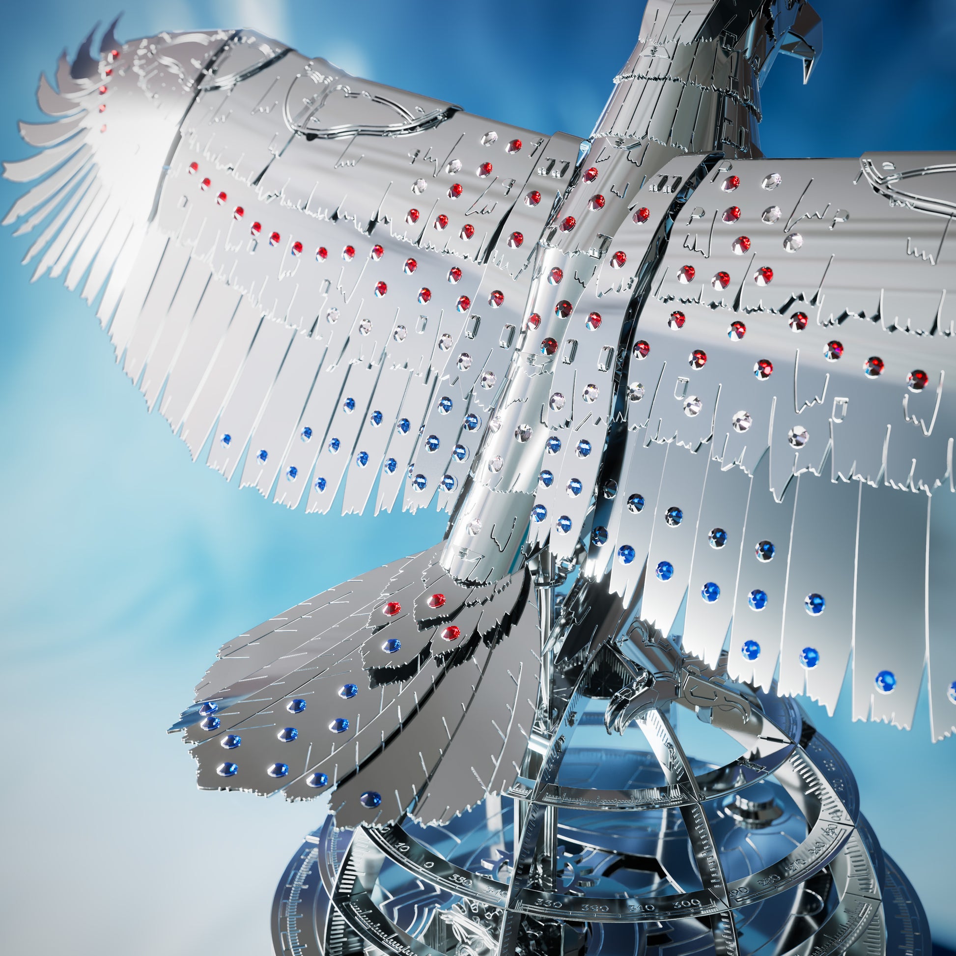 Wings That Move – With intricately engineered mechanics, its wings beat in lifelike motion — giving the illusion of flight frozen in time, captured forever in metal. A true engineering marvel, the model incorporates ingenious mechanical elements that animate the eagle, transforming it into a dynamic and enthralling masterpiece.
