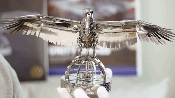 Wings That Move – With intricately engineered mechanics, its wings beat in lifelike motion — giving the illusion of flight frozen in time, captured forever in metal. A true engineering marvel, the model incorporates ingenious mechanical elements that animate the eagle, transforming it into a dynamic and enthralling masterpiece.